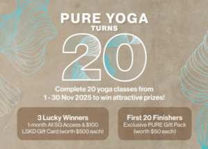 • The first 20 participants from each club (PURE Yoga Ngee Ann City and PURE Asia Square) to complete the challenge can redeem a gift pack at the front desk. While stocks lasts.
